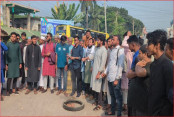 সাতক্ষীরায় জুলাই স্মৃতিস্তম্ভে আগুন দেওয়ার প্রতিবাদে বিক্ষোভ মিছিল ও সড়কে টায়ার জ্বালিয়ে অবরোধ করেছেন বৈষম্যবিরোধী ছা...